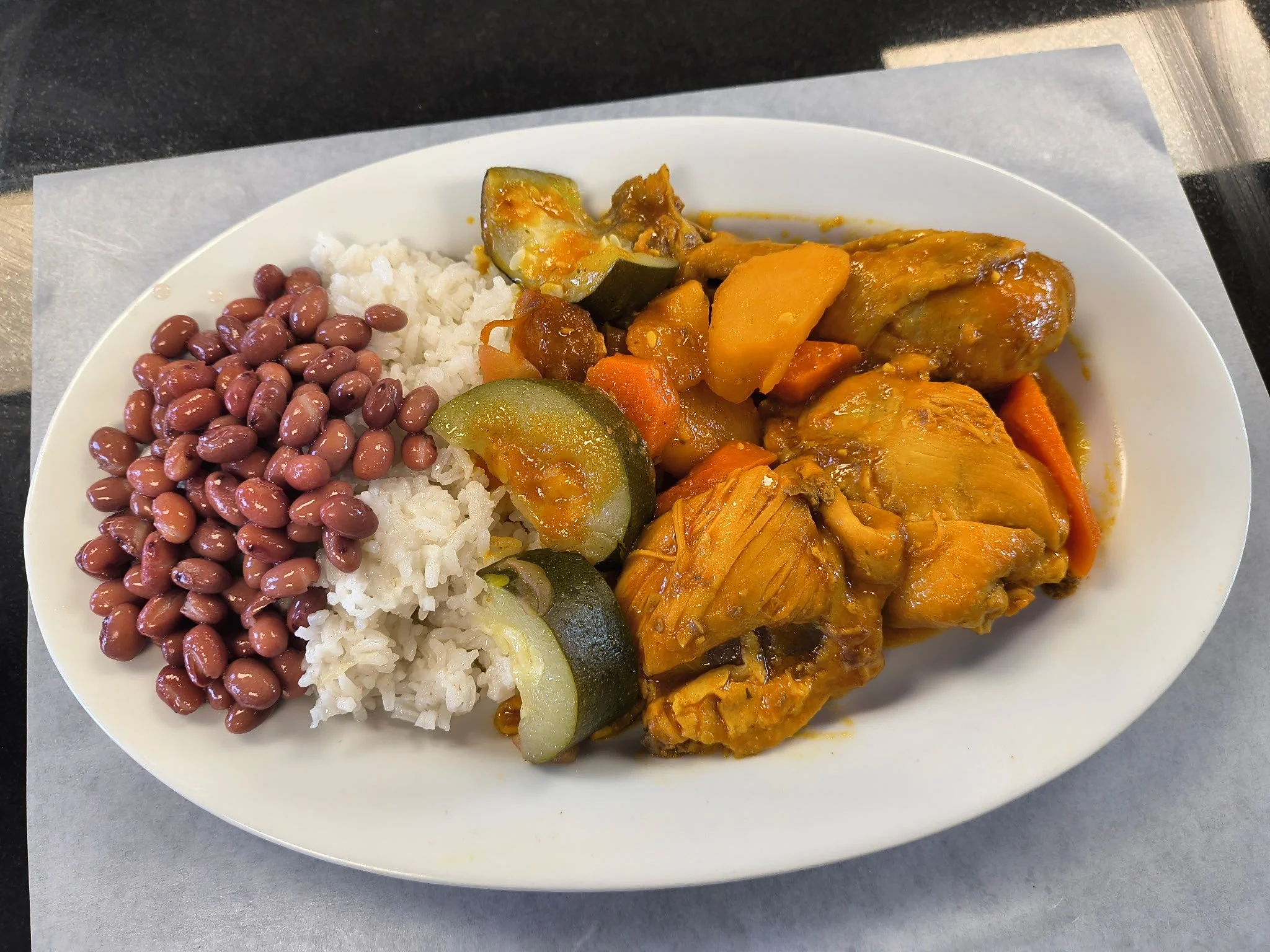 A generous portion of rice and beans (White or Yellow rice) with beans of your choice (Red and Black beans).